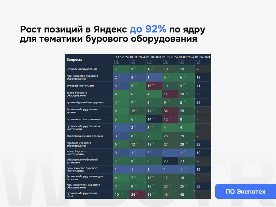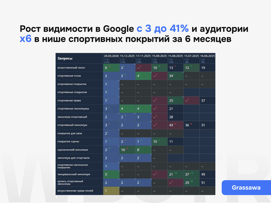 Смотрим, какие разделы, карточки и шаблонные страницы реально приводят заявки, где сайт усиливается, а где остаются слабые зоны, требующие следующей итерации работ.